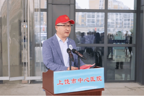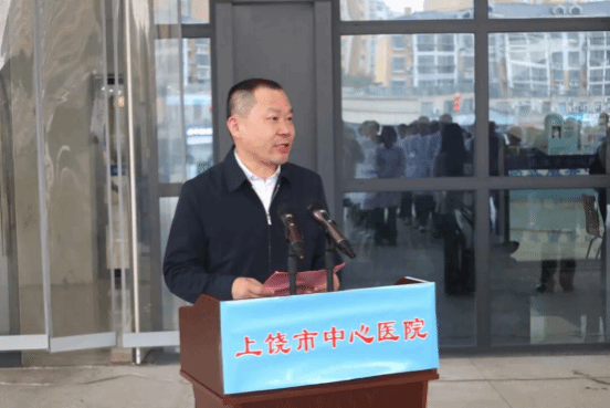 上午8:30,公益义诊启动仪式在上饶市中心医院门诊大楼前广场正式举行。江西医学高等专科学校党委副书记、校长方义湖,上饶市人民政府驻上海联络处主任江丽红,上海市静安区二级巡视员、中国人才交流协会人力资源服务产业园专委会主任、沪赣医促会顾问王光荣,同济大学附属同济医院普外科教授、主任医师、沪赣医促会总会会长兼上饶工作部部长胡志前,上饶市政府副秘书长、市中心医院党委书记张法龙,上饶市卫生健康委党组成员、副主任、市疾控局局长陆明等领导出席启动仪式。现场上海专家方阵、上饶市中心医院医务人员方阵、志愿者方阵整齐列队。