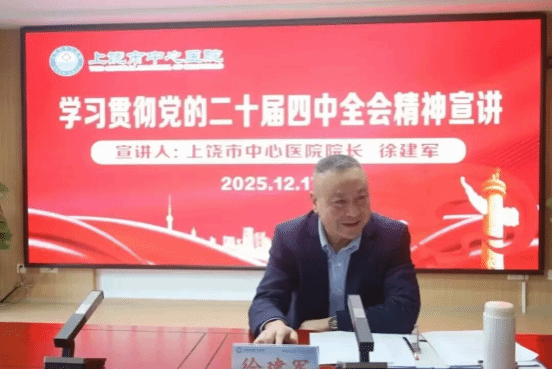 (一)10月29日上午,上饶市中心医院召开党委理论学习中心组(扩大)会议,传达学习党的二十届四中全会精神,研究部署医院学习宣传贯彻落实工作。江西医学高等专科学校党委副书记、校长方义湖列席会议指导,市政府副秘书长、医院党委书记张法龙主持会议并讲话,院长徐建军、院领导班子成员、各党支部书记、行政职能科室负责人参加会议。