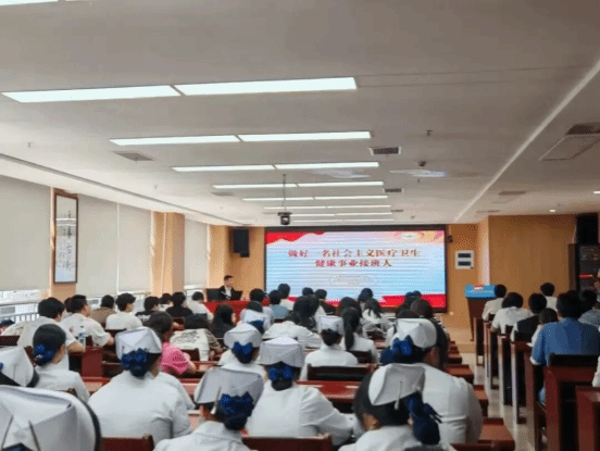 (三)5月12日国际护士节当天,上饶市中心医院(江西医学高等专科学校第一附属医院)、江西医专创新班学生、实习生及医院见习生合计百余人齐聚一堂,聆听上饶市政府副秘书长、院党委书记张法龙讲授的题为《做好一名社会主义医疗卫生健康事业接班人》的思政课。