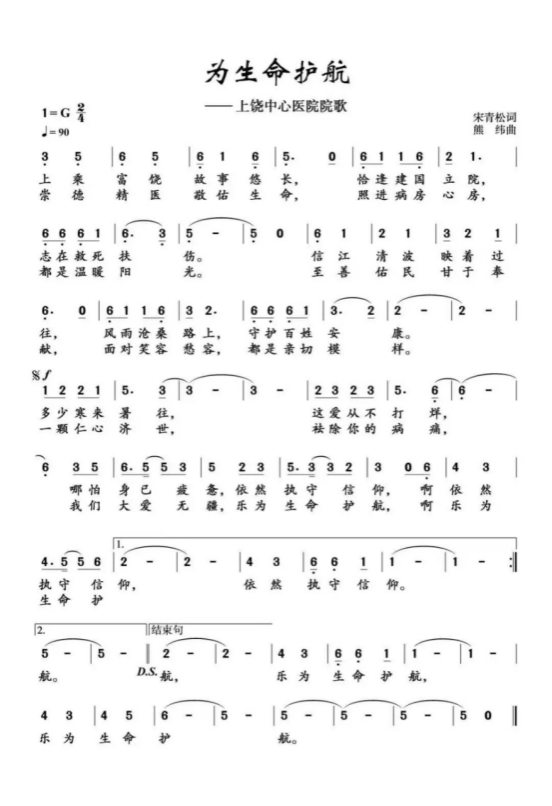 (二)上饶市中心医院院歌《为生命护航》由国家一级作曲家熊纬教授与著名词作家宋青松教授强强联手创作!该歌曲于2025年8月19日医师节当天正式对外发布,选择在这个全社会致敬医者仁心的特殊日子首发,是对全体医务工作者崇高精神的献礼。