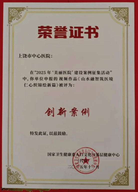 (一)2025年9月,国家卫生健康委员会人口文化发展中心发布“2025年‘美丽医院’建设案例征集活动”结果公告,上饶市中心医院从全国500多家医院中脱颖而出,荣获“创新案例”。值此殊荣之际,11月29日,由该中心主办的全国“美丽医院”建设经验交流会在浙江湖州召开。上饶市政府副秘书长、市中心医院党委书记张法龙受邀参会,并以《院在景中 人在画中》为题登台分享。交流结束后,为巩固和深化“美丽医院建设成果”,医院迅速组织召开“美丽医院”建设推进部署会,确保各项工作落到实处。