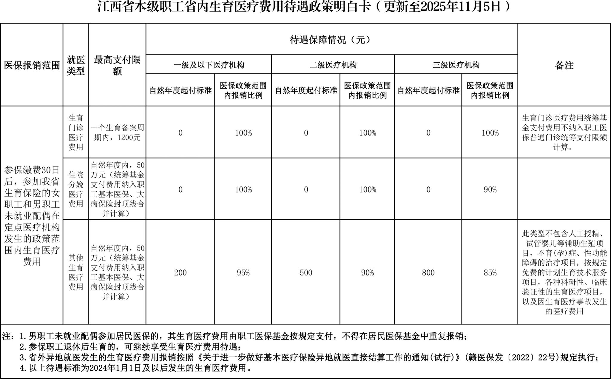 江西省本级职工省内生育医疗费用待遇政策明白卡