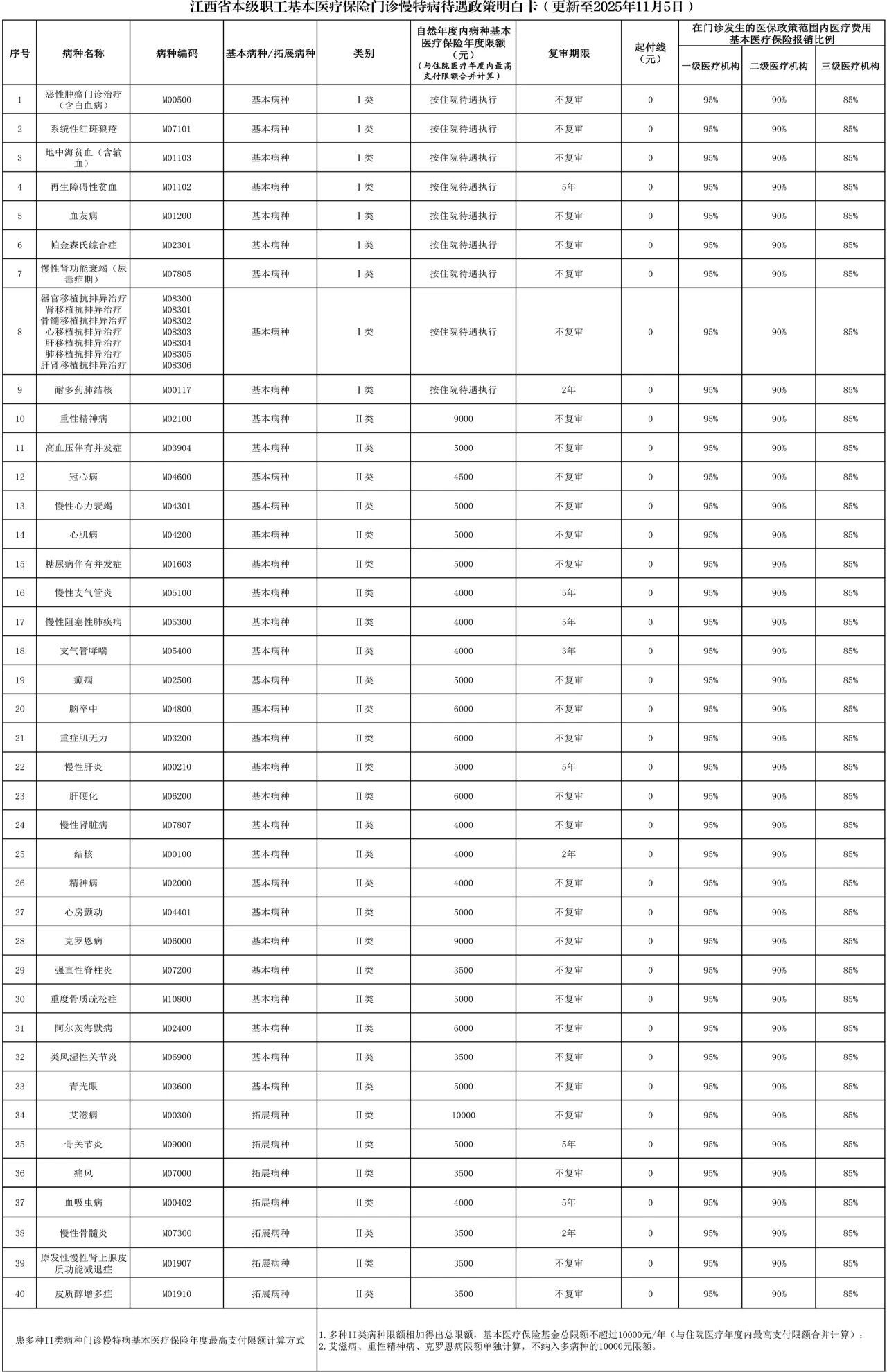 江西省本级职工基本医疗保险门诊慢特病待遇政策明白卡