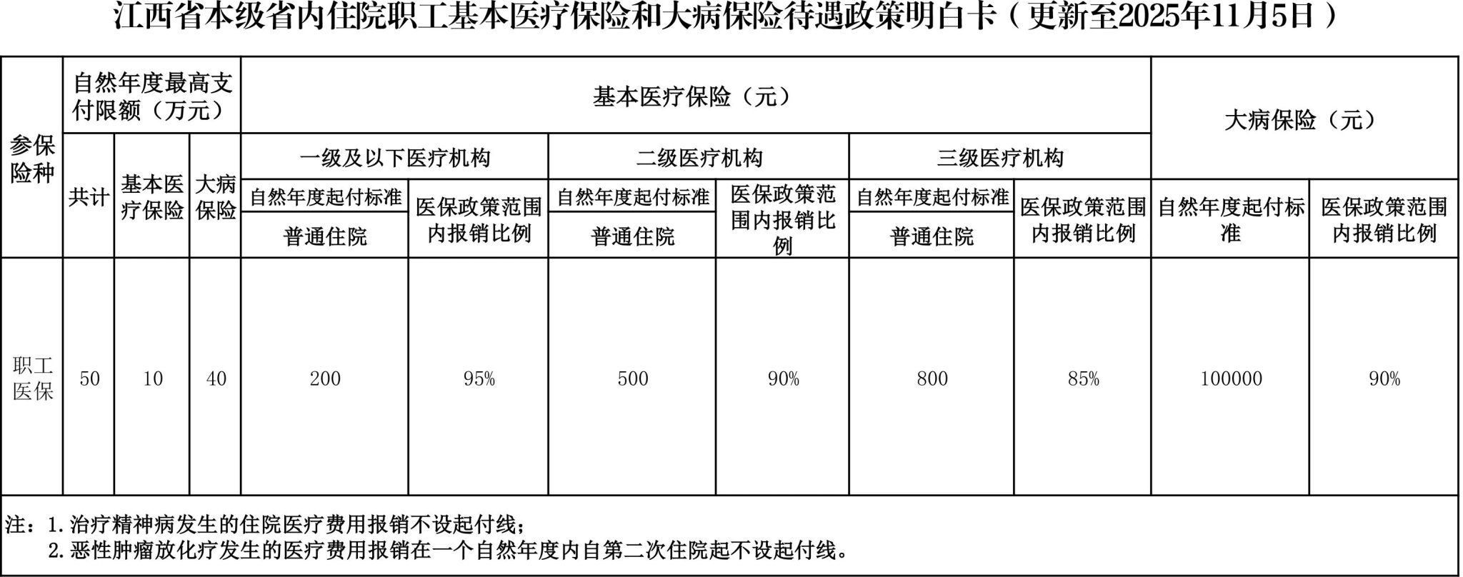 江西省本级省内住院职工基本医疗保险和大病保险待遇政策明白卡