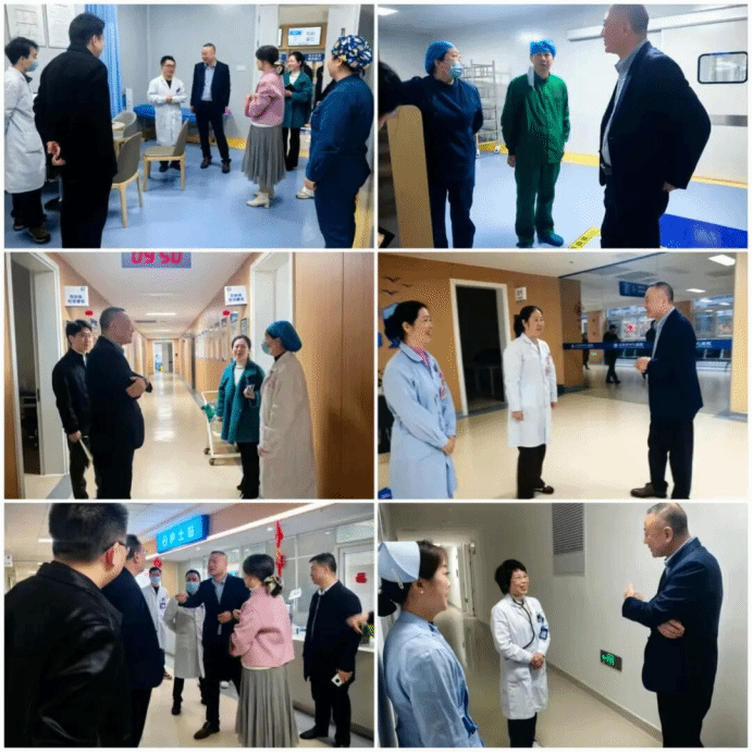 简短而热烈的团拜会后,院领导班子成员和相关职能科室负责人在徐建军的带领下,深入各临床科室,看望慰问节后返岗的医务人员和工作人员,向大家送上开工祝福。每到一处,院领导都与大家亲切交流,详细了解科室运行情况和患者收治状况,关切询问工作中的实际困难与需求。